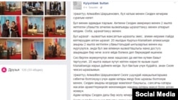 Кылычбек Султанов в беседе в «Азаттыком» назвал свое сообщение в сети человеческим жестом. При этом он добавил, что его политические взгляды остаются неизменными.