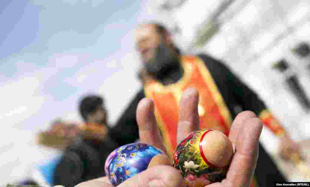 В этом году христиане - протестанты, католики и православные - отметили Пасху в один день. Фоторепортаж из Свято-Воскресенского собора в Бишкеке.