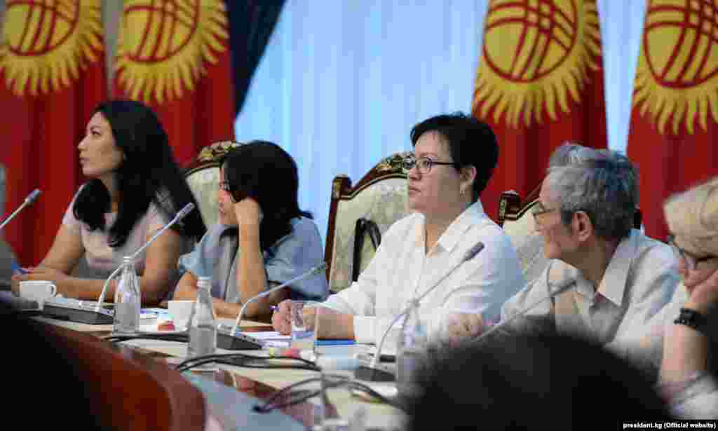 Президент Кыргызстана Сооронбай Жээнбеков 19 июля встретился с представителями гражданского общества Кыргызстана. По его словам, представители гражданского общества направили все свои знания, опыт и энергию на созидание ради интересов народа. Фото пресс-службы президента.